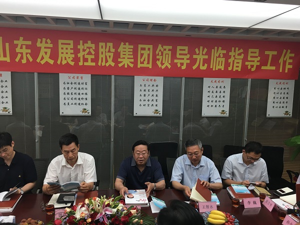 2016年6月12日下午,山东发展投资控股集团党委书记兼董事长孟雷先生、纪委书记姚洪胜先生、董事会秘书王智永先生、资本运营部部长李巍、副总经理姜国先生、人力资源部部长王国庆、投资部主管尤雅女士、办公室副主任孙金旭先生一行专家莅临天成大学总部指导工作。天成大学校长孙明高博士,校友会秘书长刁琢女士等集团金融产业领导列席会议。双方就企业培训、投资领域问题进行深入探讨。