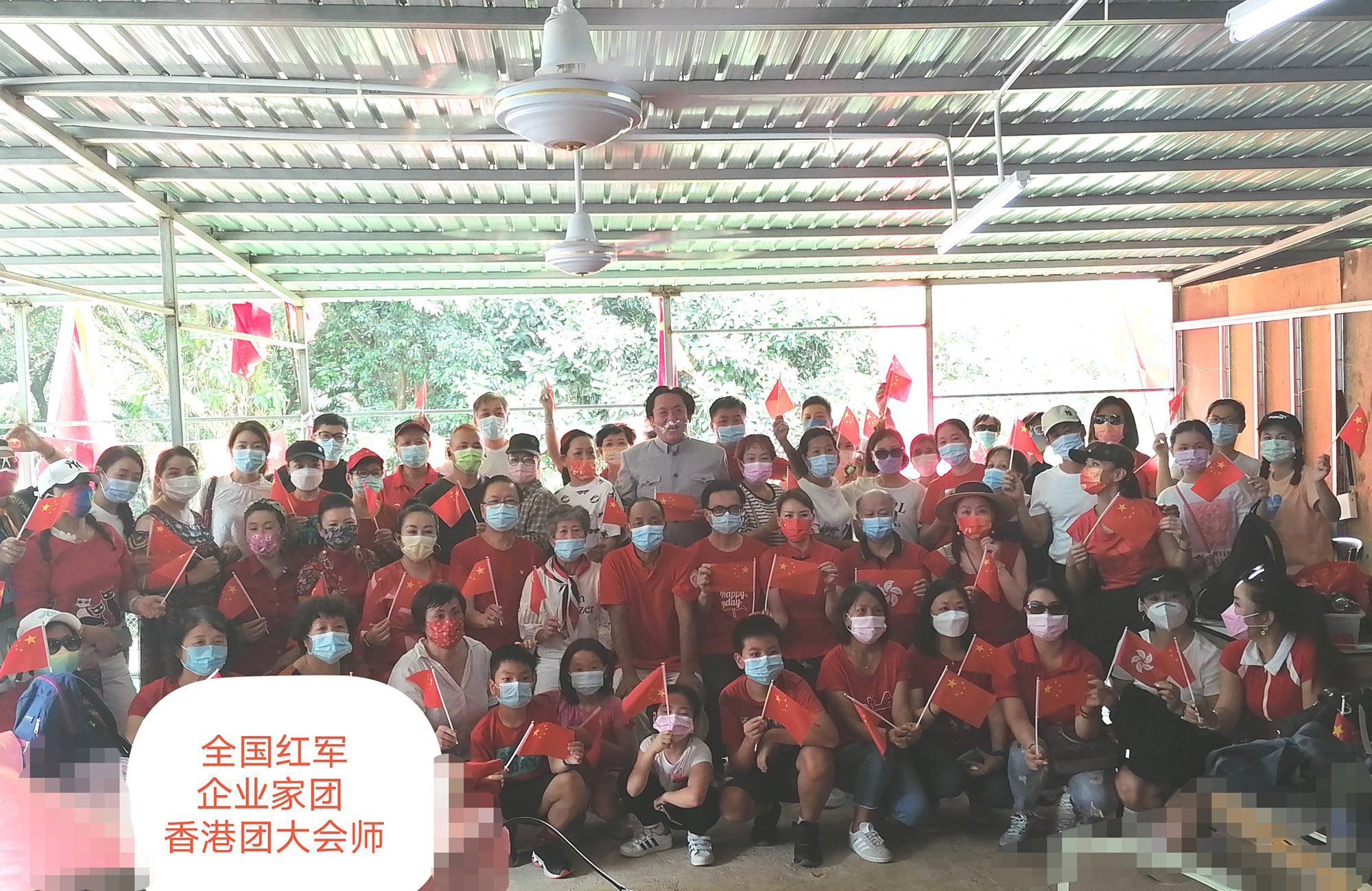 为庆祝中华人民共和国成立72周年,弘扬革命精神、传承红色文化。2021年10月1日,香港信用担保联合会主席、粤港爱心义工联盟主席、全国红军企业家团主席、中国天成大学副校长汪润田主席号召并主办主礼了近百位爱国香港同胞聚集在香港的红军山庄大会师,大家一起大合唱国歌,庆祝我们伟大祖国建国72周年。